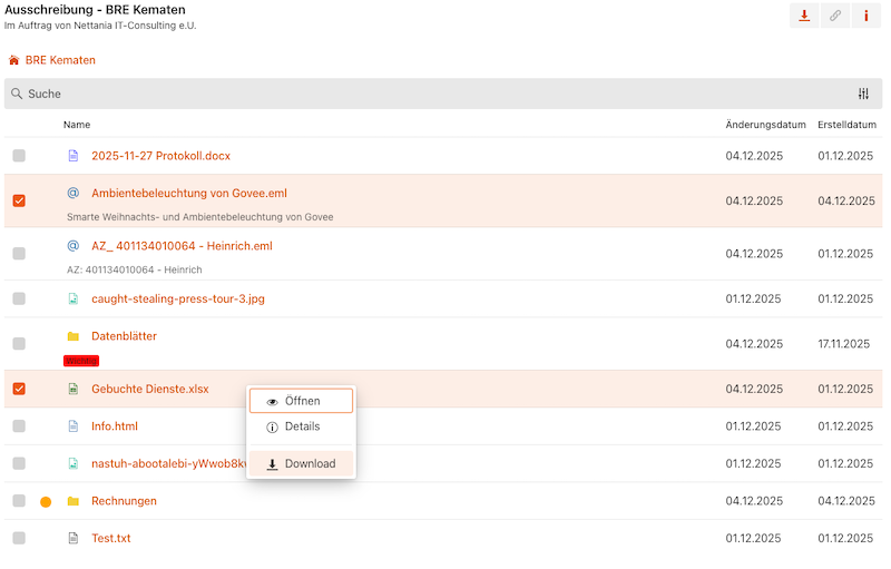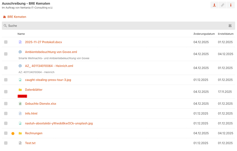 Wir haben die UI für Freigaben völlig überarbeitet. Iht könnt nun auch ganze Ordner und nicht nur einzelnen Dateien freiegeben. Wenn der Empfänger den Freigabelink öffnet wird er eine völlig überarbeitet Oberfläche vorfinden, die sich am Filebrowser, wie ihr ihn aus CAdmin kennt, orientiert.